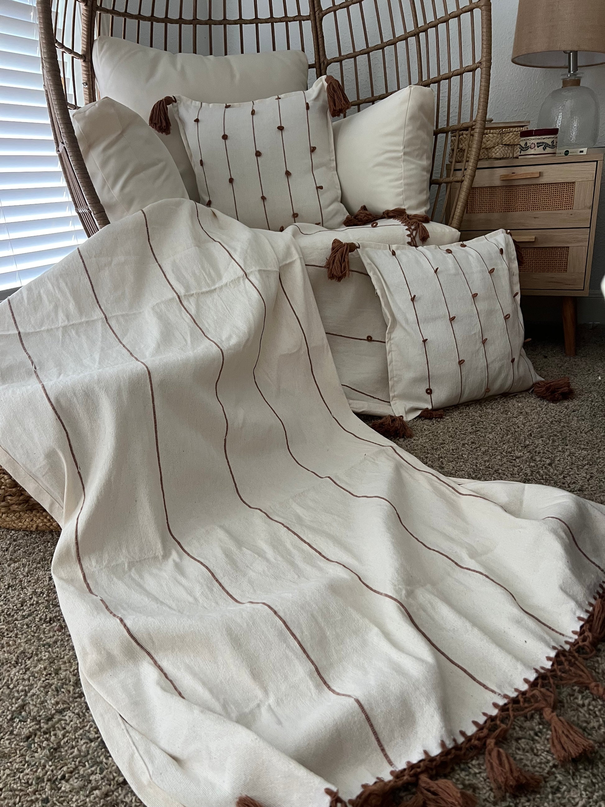 Handwoven from 100% cotton, this is the perfect lightweight blanket for a picnic at the park or to just throw over your bed or couch.