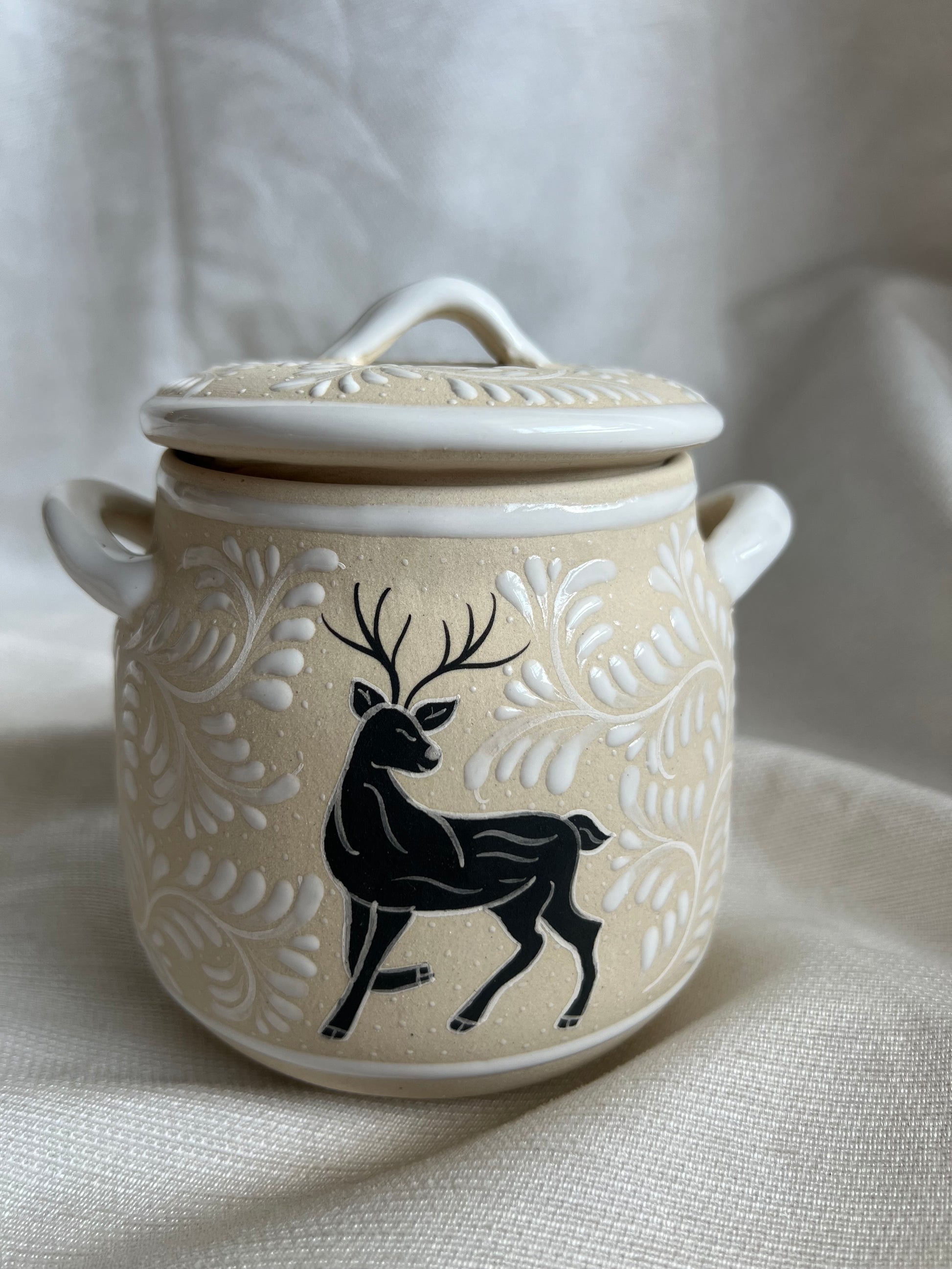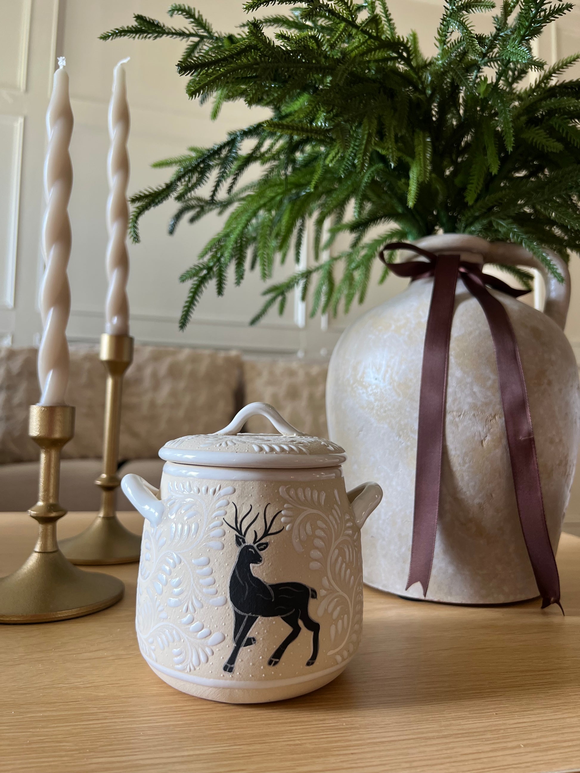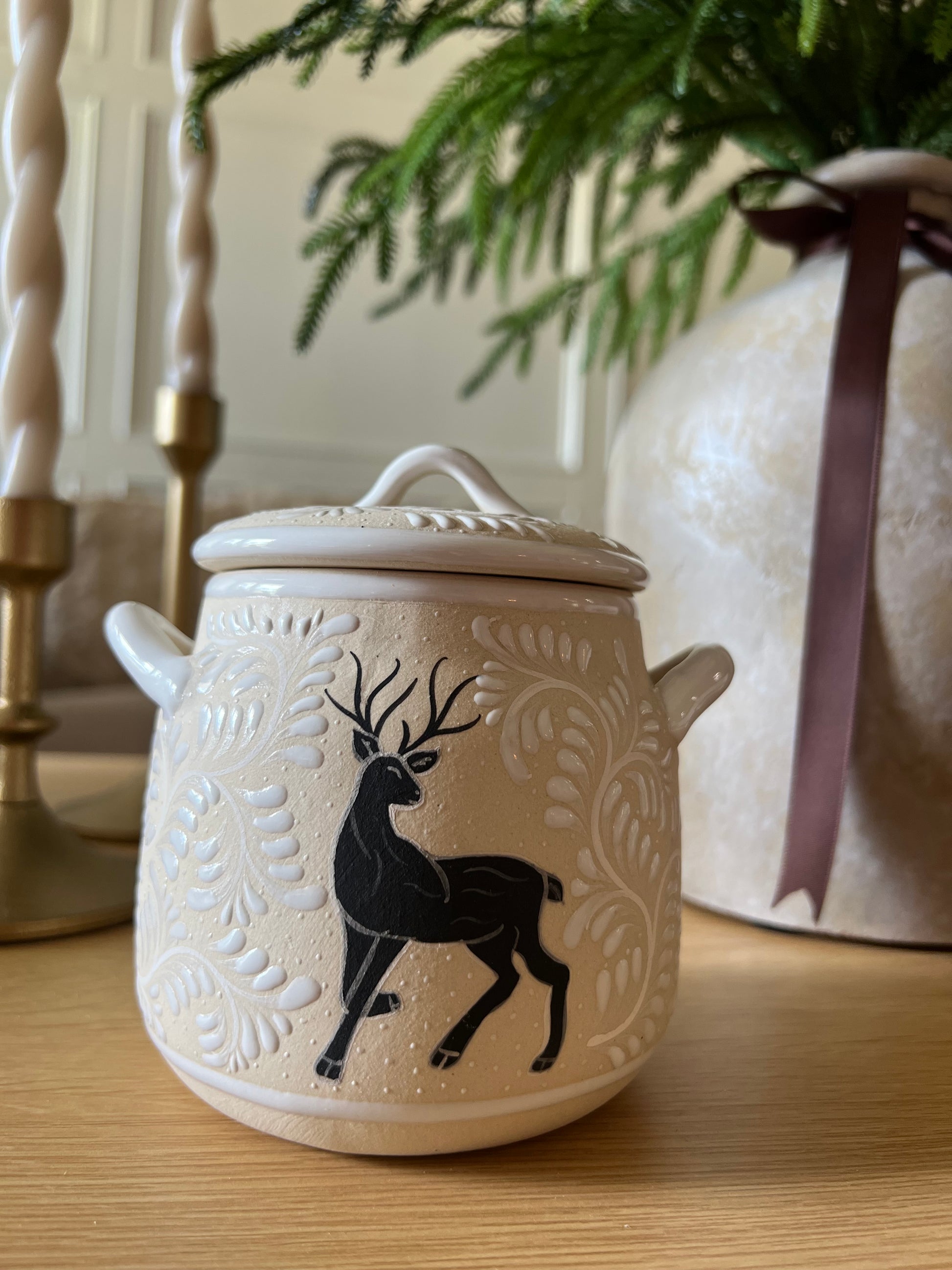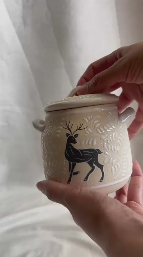 This handcrafted ceramic pot, delicately hand-painted by Mexican artisans, is both charming and versatile. A beautiful gift idea for Christmas, perfect for filling with candies, marshmallows, or even cookies
