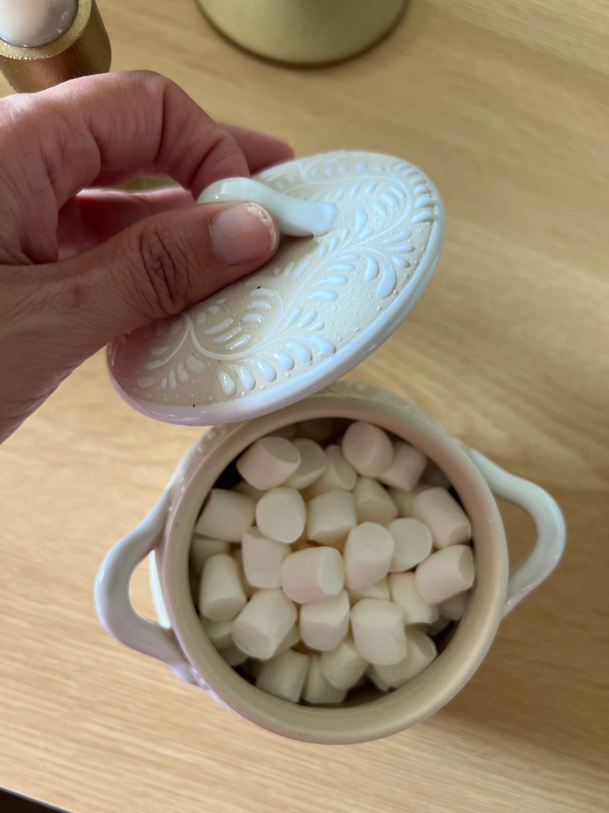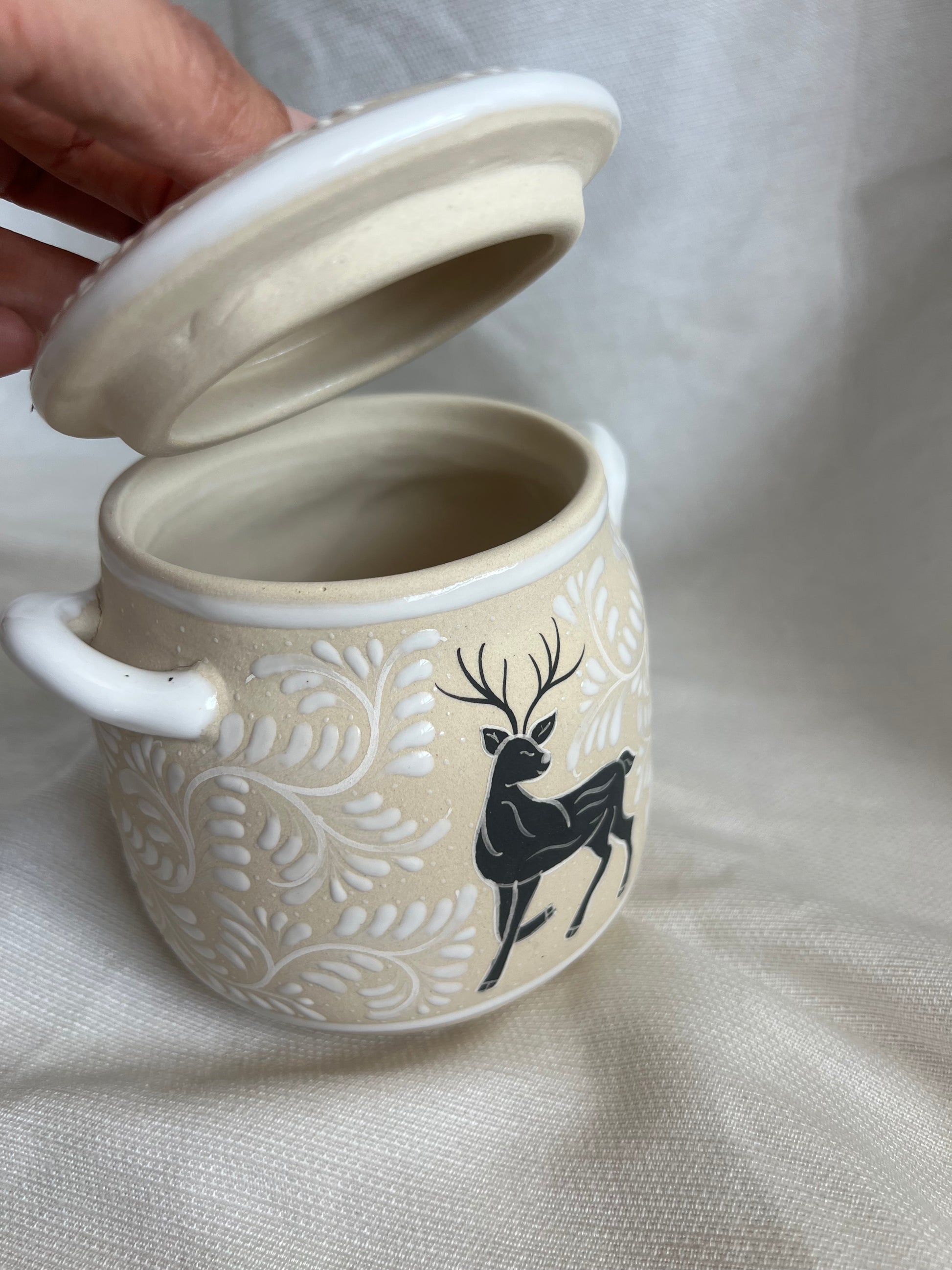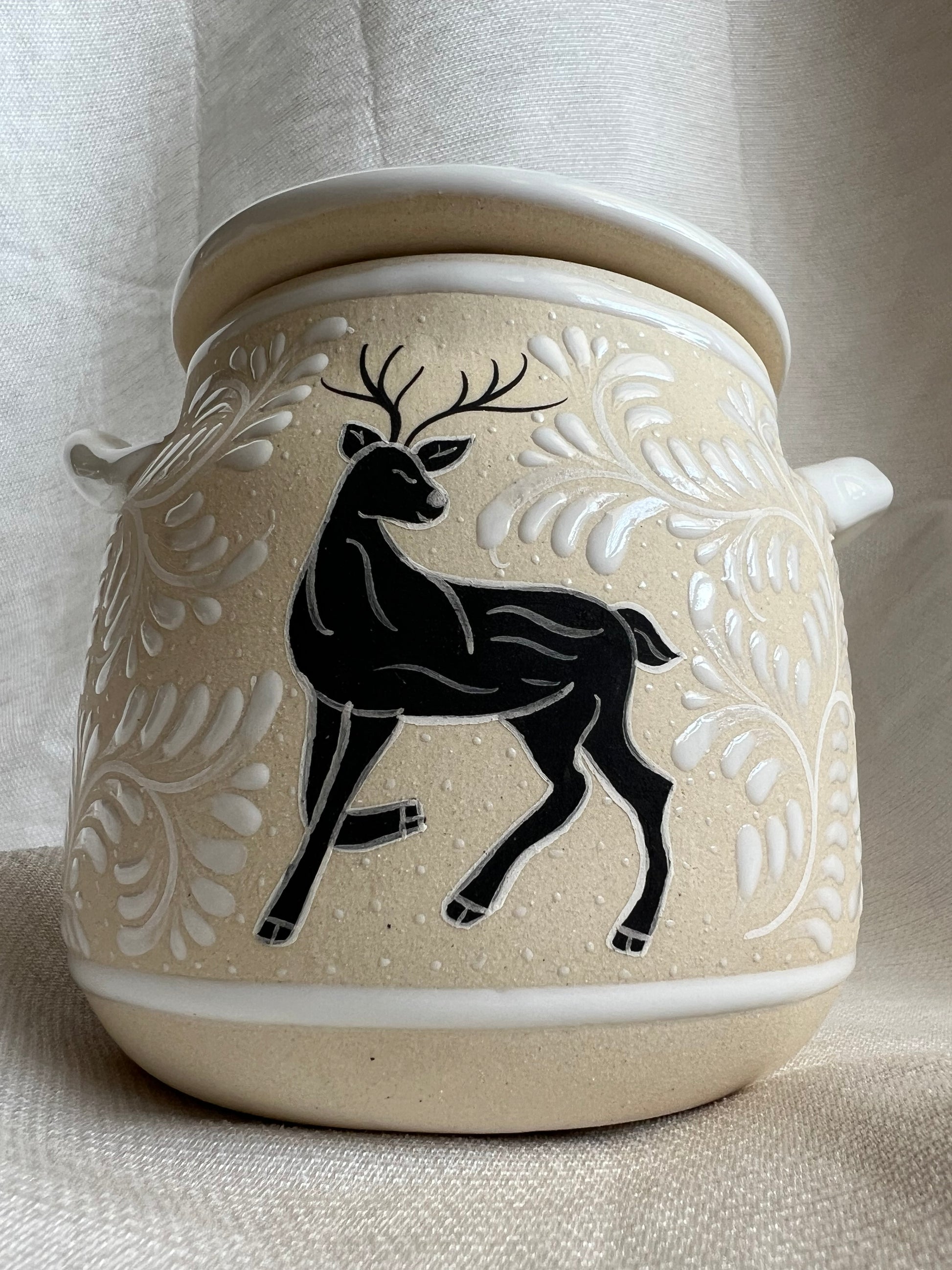This handcrafted ceramic pot, delicately hand-painted by Mexican artisans, is both charming and versatile. A beautiful gift idea for Christmas, perfect for filling with candies, marshmallows, or even cookies